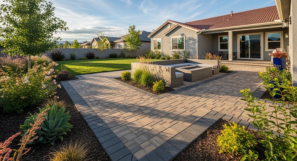 Paver patios & walkways: Custom-designed interlocking paver installations for sophisticated outdoor living.